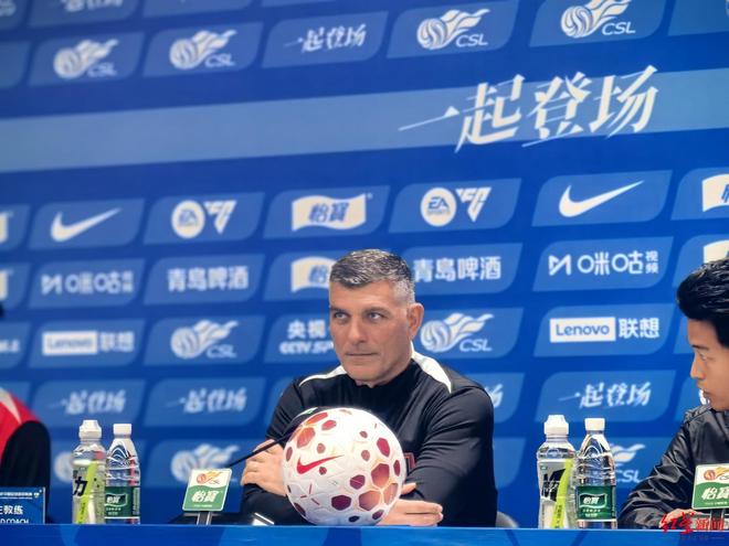 ▲成都蓉城主帅阿洛伊西出席赛前新闻发布会