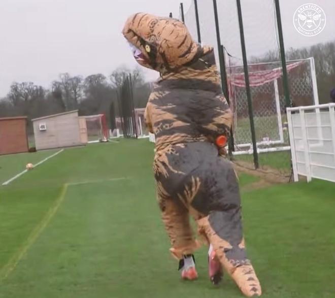 显然是在我的单身派对上,朋友们让我打扮成空乘人员的样子去美国。另外,我在布伦福德膝盖受伤复出后,第一次训练时,我打扮成了恐龙的样子。