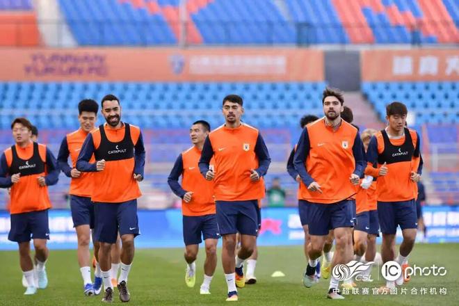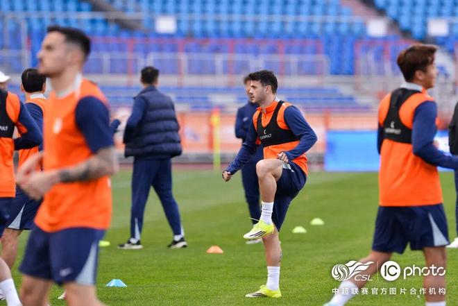 3月20日晚,山东泰山队在云南玉溪高原体育运动中心体育场进行赛前踩场训练,备战明天与云南玉昆队的中超比赛。