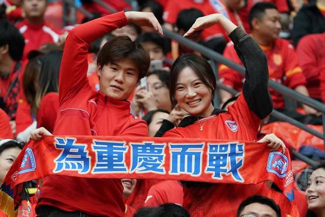 比赛还未开始,重庆球迷在龙兴足球场开始了热身,在聚集了近1万名铁杆球迷的龙兴足球场南看台,重庆球迷双手举过头顶,开始一边鼓掌一边唱球迷歌,旗手也开始挥舞旗帜进行预演,希望在今晚打造最棒的赛场氛围。