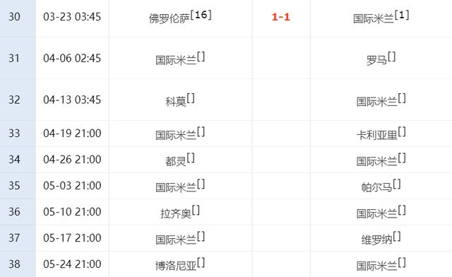 根据赛程安排,在国家队比赛日结束之后,国米就将在主场迎战罗马,之后做客对阵科莫,这2队如今为了争四,都已经杀疯了,国米遇到这2个对手,随时可能再丢分。第36轮,国米还将做客对阵拉齐奥,最后一轮则在客场打博洛尼亚,这2场比赛同样无比艰难。也就是说最后8轮比赛,国米要对阵4大强队,这几场比赛,一旦国米丢掉6分或以上,那他们很可能失去争冠的机会。