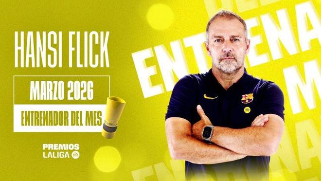 弗里克被评为西甲联赛3月最佳教练。巴塞罗那足球俱乐部3月表现出色,三战全胜,继续领跑积分榜。