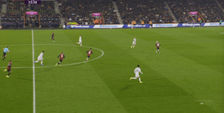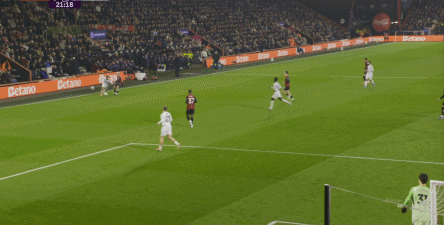 你不能想着用一个边锋和中锋来拼出一个完美的前锋,因为布鲁诺的防守意识很难支撑他做进攻第三人,也就是防守第八人,这一点在曼联丢的第一球就能看到:
