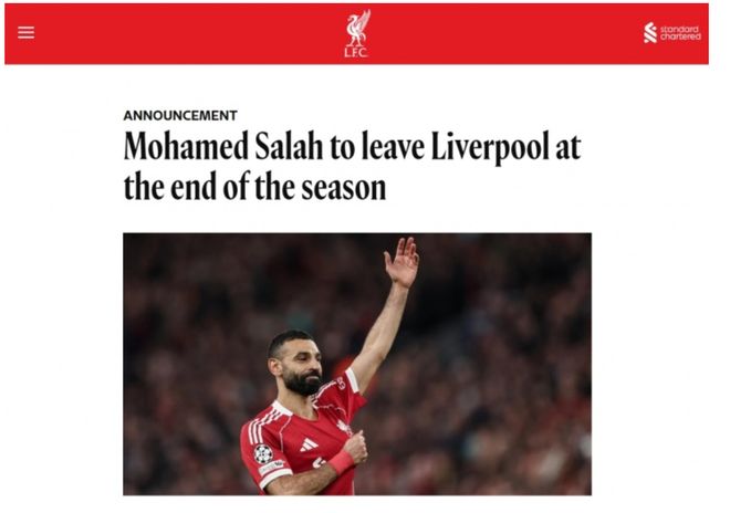 北京时间3月25日凌晨,利物浦射手萨拉赫在个人社交媒体上发布视频,宣布自己将会在本赛季结束后离开利物浦,随后利物浦官方也确认与萨拉赫达成协议,赛季结束后球员将会离队,结束9年利物浦生涯。从2017年加盟利物浦开始,萨拉赫为球队一起拿到了包括2座英超和1座欧冠冠军在内的9座冠军奖杯,同时也打进了255粒进球,成为利物浦的传奇射手。