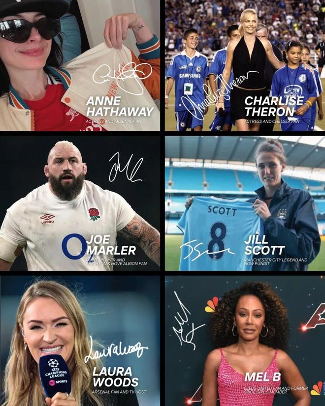 “完美粉丝签”的独特之处在于,Topps将目光投向了绿茵场之外。这些跨界名人并非足球从业者,但他们都有一个共同的身份——英超俱乐部的忠实拥趸。