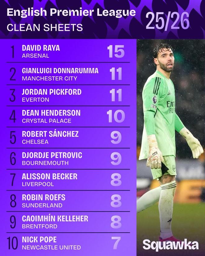 本赛季英超零封榜:拉亚15次第1,多纳鲁马、皮克福德11次第2