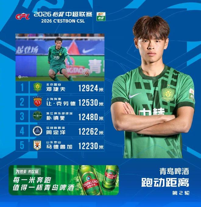第二轮国安客场对阵泰山,同样首发打满全场的邓捷夫以12924米的跑动距离登顶中超跑动榜,他超越的,是上海海港让·克劳德、浙江队朴镇燮以及深圳新鹏城周定洋,足见这个数据的含金量。
