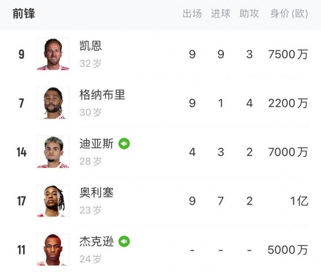 拜仁前场阵容:(不含二队小将)