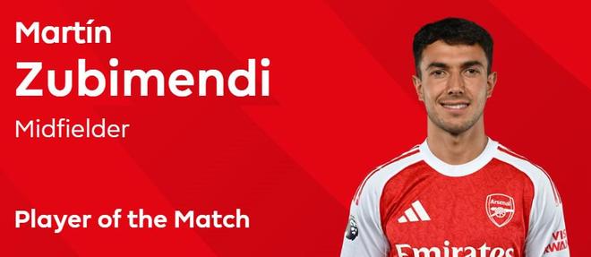 在今天晚上进行的英超第4轮比赛中,阿森纳主场3-0击败诺丁汉森林,赛后,苏比门迪被英超官方评为本场比赛最佳球员。