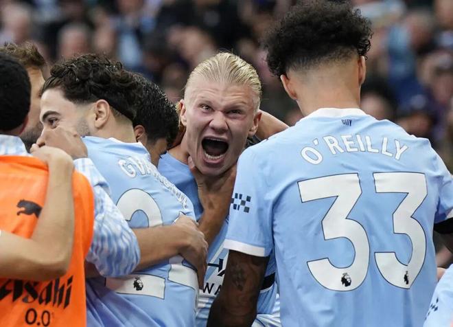 第68分钟,哈兰德半场奔袭后推射完成梅开二度,曼城3-0!这也是哈兰德在个人第6场英超曼市德比中收获的第8球,进球总数超越福登和坎通纳,与鲁尼、阿圭罗并列英超曼市德比射手榜第一。