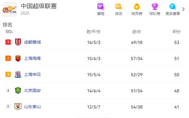 亚冠虽然刚开始,但这个赛季的中超却已经接近尾声。中超积分榜上,上海申花积50分排名第三,落后榜首的成都蓉城3分,而5天之后的倒数第二轮,申花将和蓉城正面交锋,届时比赛结果很可能决定最后冠军的归属。