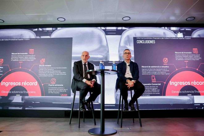 在西甲各队的工资帽公布后,西甲联盟主席哈维尔-特瓦斯和总经理哈维尔-戈麦斯共同出席了媒体发布会,谈到了西甲与英超的差异。
