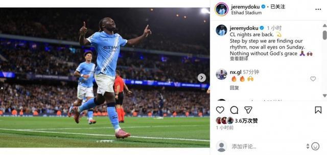 本场比赛多库打进精彩进球,他也在个人社媒晒出庆祝进球照片,配文写道:“欧冠之夜回归!我们一步一步找回节奏,现在专注于周日的比赛,一切都来自上帝的恩赐。”