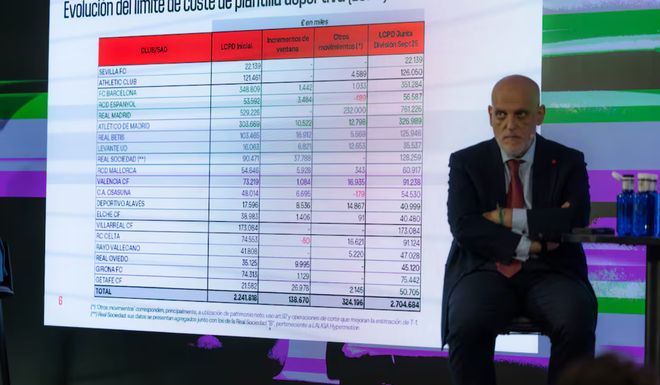 雷速体育9月19日讯 西甲联赛主席特巴斯和西班牙雇主协会总经理戈麦斯公开亮相,公布了西班牙甲级联赛和乙级联赛新的工资帽。他们对比了英超和西甲的区别,并对巴塞罗那的复苏表示乐观。