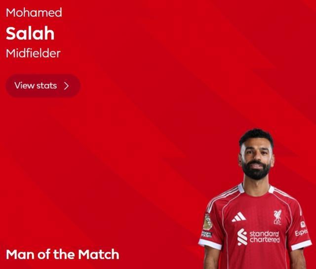 本场比赛萨拉赫送出一次助攻,赛后他也以35%的得票率当选英超官方球迷票选全场最佳球员,力压得票率33%的赫拉芬贝赫。