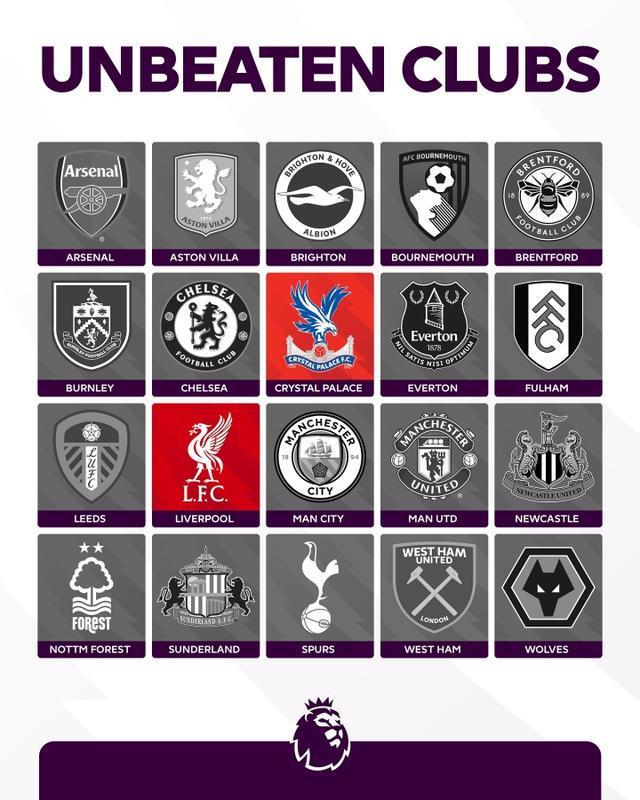 此役过后,英超目前不败的球队只剩下利物浦和水晶宫。其中,利物浦5战全胜,水晶宫2胜3平。