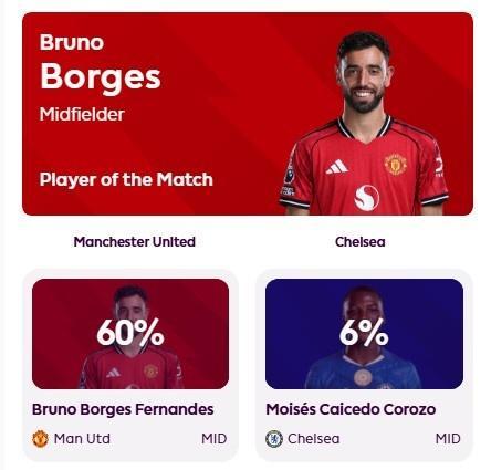 B费在赛后评选中获得60%的票数,以巨大优势当选全场最佳。