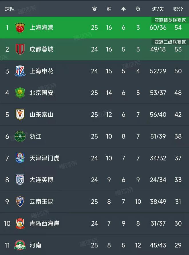 第86分钟,国安由张稀哲追回一球,最终海港3-2战胜国安迎来两连胜,拿到宝贵的三分,由于蓉城和申花的比赛还没有结束,海港以54分暂列第一。国安遭遇三连败,积分停留在48分,继续排在第4名,冲击冠军的路上率先掉队!