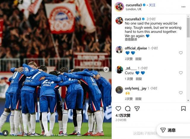 在社交媒体上,库库雷利亚写道:没有人说过这段旅程会一帆风顺。虽然这周很艰难,但我们正共同努力扭转局面。我们将再次出发。
