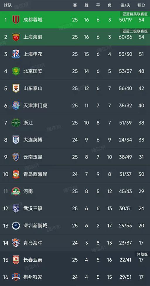 北京时间9月22日,中超第25轮结束了所有比赛,最新积分榜如下!