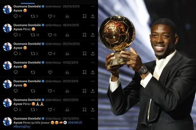 直播吧9月23日讯 马卡报消息,新科金球奖得主登贝莱曾是阿约泽-佩雷斯的粉丝。