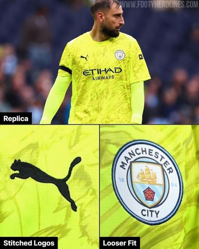 此前多纳鲁马在英超的首秀,曼城3-0击败曼联。多纳鲁马没有穿球员版球衣,而是选择了球迷版。这件球迷版采用了绣制的彪马和曼城队徽,而不是球员版更轻的热压工艺元素,并且更为宽松。