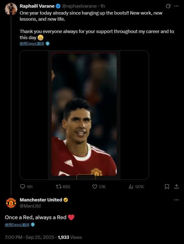 直播吧9月25日讯 瓦拉内在自己退役一周年之际更新社媒,他写道: