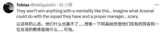 这番言论在社媒上引发了球迷的广泛讨论,很多球迷对阿尔特塔进行了批评。