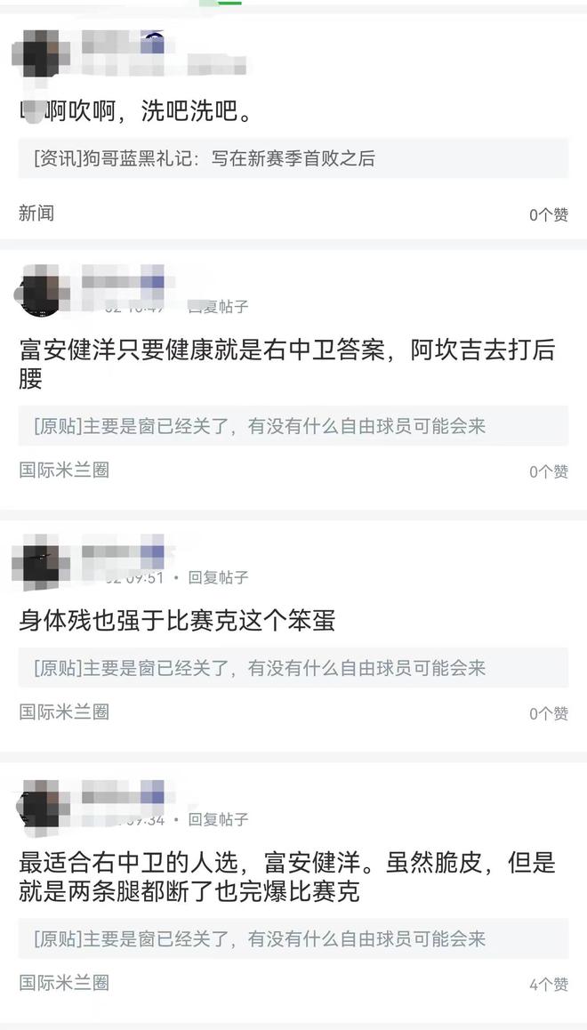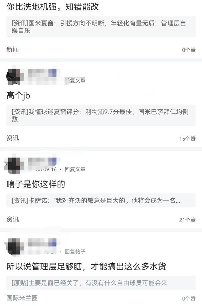 很久没有跟人对线了,昨天没忍住,回复了两个人,好家伙,捅马蜂屁股了,追着我大有要和我同归于尽的架势。我就想说,你有这个能耐,怎么不跟那些整天黑国米的人battle呢?就跟自己人使劲。我替奥西里奥说话,说我洗地机。我说二队球员需要成长时间,说我给一群废物站台,还是洗地机。我还真就特意花了点时间点开这个人的全部评论看了一下,好家伙清一色全是在骂国米,而且还是那种阴阳怪气的的口吻。思来想去,名字不挂了,上图大家看看得了。