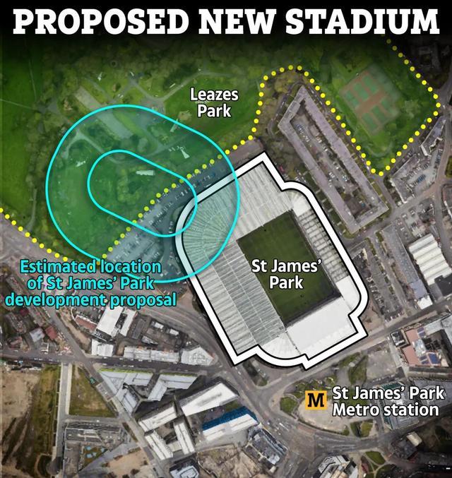 据报道,纽卡斯尔方面一直在研究如何将现有的球场容量从现在的近5.2万人提升到更高的水平。选项包括在附近的利兹公园(Leazes Park)新建一座斥资30亿英镑的现代化球场,或者对现有的圣詹姆斯公园进行改造。