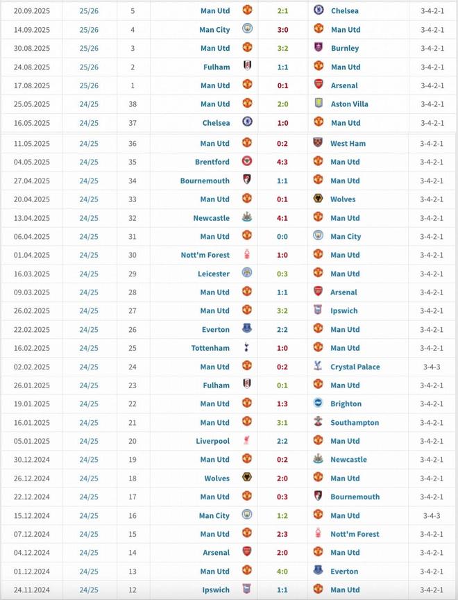 据数据统计,这是阿莫林在英超的第17场失利,自阿莫林上任后,带领曼联打了33场英超比赛,取得9胜7平17负的战绩,而在9场赢球的比赛之后阿莫林的战绩为1平8负,唯一一场平局是在主场1-1战平阿森纳。