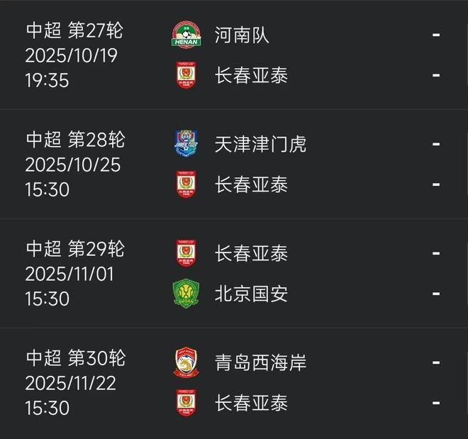 目前这两支同积18分排在积分榜的倒数第二和第三位,青岛海牛仅以净胜球优势身位领先高出降级区。最后四轮海牛将面对海港、国安、三镇和浙江,长春将面对河南、天津、国安和青岛西海岸。