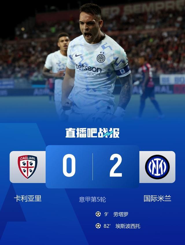 意甲第5轮,国米客场2-0战胜卡利亚里,劳塔罗、埃斯波西托进球。