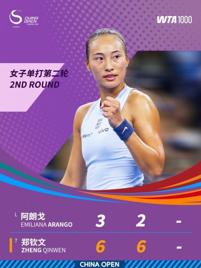 郑钦文2比0实现对阿朗戈三连胜,晋级中网女单第3轮