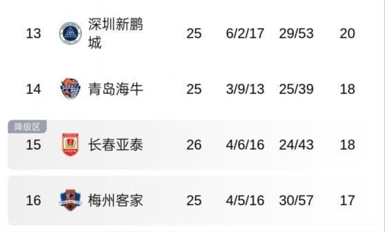 直播吧9月27日讯 中超联赛第26轮,长春亚泰主场2-2绝平青岛海牛,目前积18分暂时排名中超倒数第二。