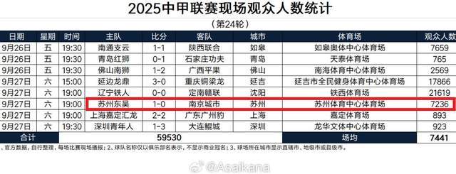 第三个,与国内职业联赛相比,苏超的对比更显残酷。本轮中甲上演了江苏最高级别的“职业德比”,苏州东吴对阵南京城市,但现场仅有7236名观众。相比之下,本轮苏超南京队主场的上座人数是它的8.4倍,苏州队主场43856人也足足是它的6倍。数据清楚表明,至少在江苏范围内,业余联赛的观赛热情已经彻底碾压职业联赛。