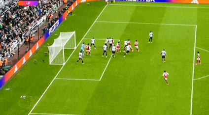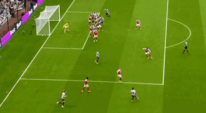 第24分钟,赖斯中路推进反击斜塞,特罗萨德接球小角度爆射,皮球击中立柱弹出!第27分钟,纽卡禁区解围没顶远,埃泽凌空抽射,又是波普精彩扑救救险。连续浪费了进球机会,枪手也受到了惩罚;第34分钟,托纳利战术角球传中,沃尔特马德后门柱甩头得手,0:1!沃尔特马德打进个人英超第2球。