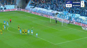 第64分钟,新鹏城角球进攻无果被对手打出反击,戴维森斜塞前场,阿齐兹带球到禁区前分到左路,段刘愚插入禁区停球弹射高出。第68分钟,段刘愚开出左侧角球,里切利近距离的头球被彭鹏神奇挡出,马特乌斯补射时犯规在先。