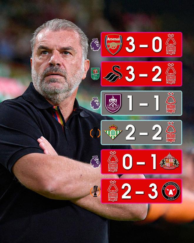 自北京时间9月9日,诺丁汉森林官方宣布前热刺主教练波斯特科格鲁成为一线队新主帅以来,波斯特科格鲁已带队出战英超、英联杯以及欧联杯各项赛事中的6场比赛,取得2平4负的战绩,至今未尝一胜。