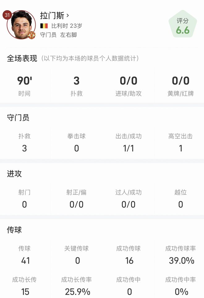 雷速体育10月4日讯 英超第7轮,曼联在主场以2-0的比分战胜桑德兰。今夏加盟曼联的门将拉门斯完成首秀。