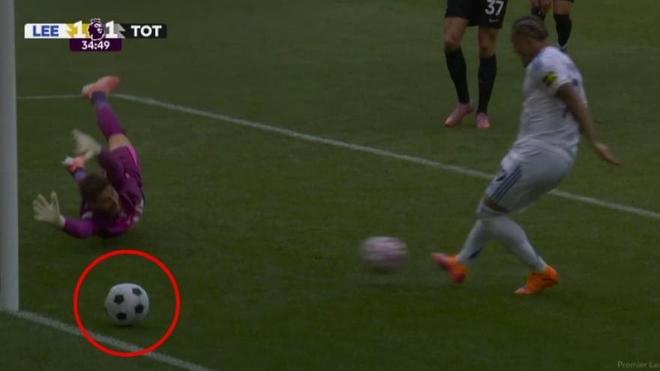 英超联赛出现了令人难以置信的一幕,在利兹联对阵热刺的比赛中,最终热刺以2比1取胜。上半场第34分钟,前米兰球员奥卡福尔突破维卡里奥攻入扳平比分的一球,但就在那一刻,场上竟然出现了一个沙滩足球。