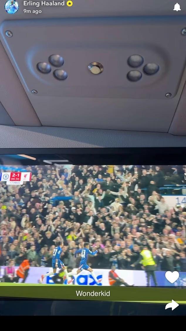 哈兰德通过电视观看了这场焦点比赛,并见证了埃斯特旺第95分钟的绝杀进球。哈兰德在社媒分享了一张自己观看进球的照片,并在埃斯特旺图片下配文“神童”。